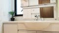 トイレ背面のキャビネットには、トイレットペーパー12ロールが丸々入るほど大容量!カウンター下には、掃除用品が収納出来ます。