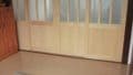 廊下からリビングへの扉は既製品のガラス入りデザインにしたのですが、それと並びにある和室との間の戸襖のデザインに悩みました。戸襖は職人さんに、既製品と同じ色合いのガラスを一本づつ入れたデザインで作っていただきました。この扉、閉じた状態でガラスから光が入るのも良いですし、開けた状態にするとガラスが重なって1本になるんです。